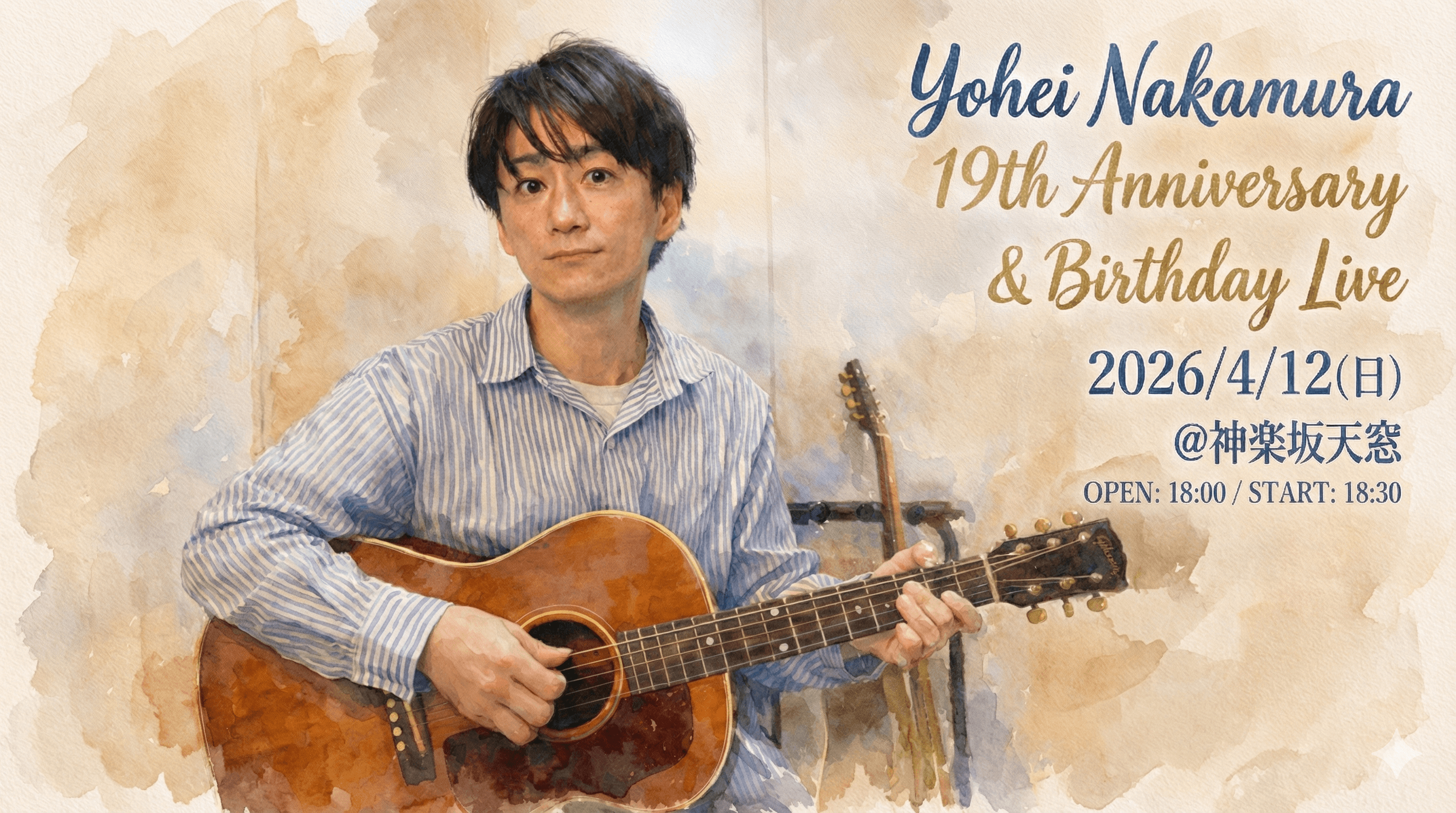 4/12(日)Yohei Nakamura活動19周年 &バースデーワンマンライブ「19」@神楽坂天窓「19」 活動19周年&B.D.ワンマンライブ開催! 2026年4月12日(日) -Yohei Nakamura活動19周...